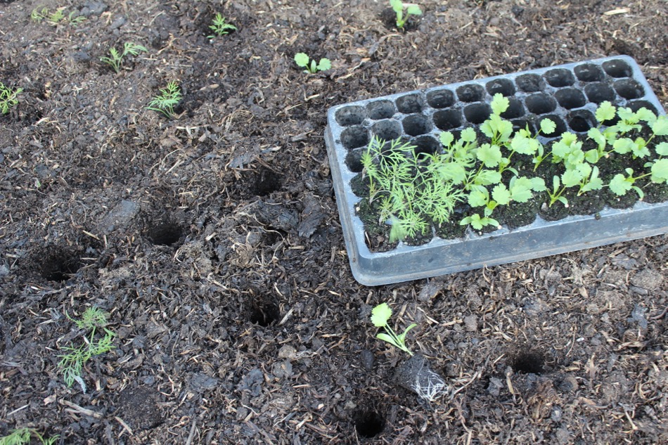 From my experience, this is an overstated task. All the plants you can see in the photo of the dig, no dig experiment were taken out of the greenhouse and planted straight into soil. This saves a lot of time and space, both inside and out.