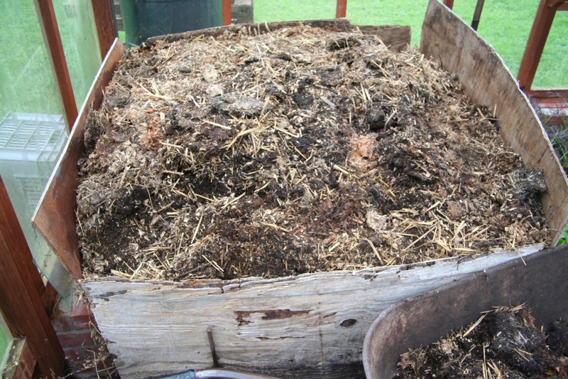 You never quite know what to expect, but in this case the manure had contained a lot of wood shavings, and most of them look similar to whan we made the heap, just darker in colour. Not usable compost but I have spread it as a mulch on some pasture, for a new bed eventually.Another issue is possible contamination from aminopyralids, which I discovered after using this manure in a different heap. I took some of the nicer compost from on top and sowed peas & broad beans - to my relief, they grew well with no damage to their new leaves. But apparently this may not be total proof of zero contamination. I am fed up with this poison being allowed, and spoiling so much manure, mosty from hroses it must be said, as the weedkiller is sprayed on hay rather than silage fields.