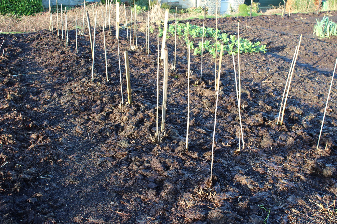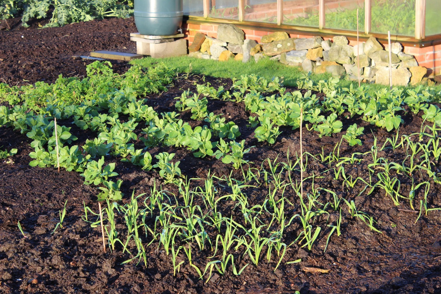 I sowed these garlic and broad beans in mid November, the beans have just withstood high winds