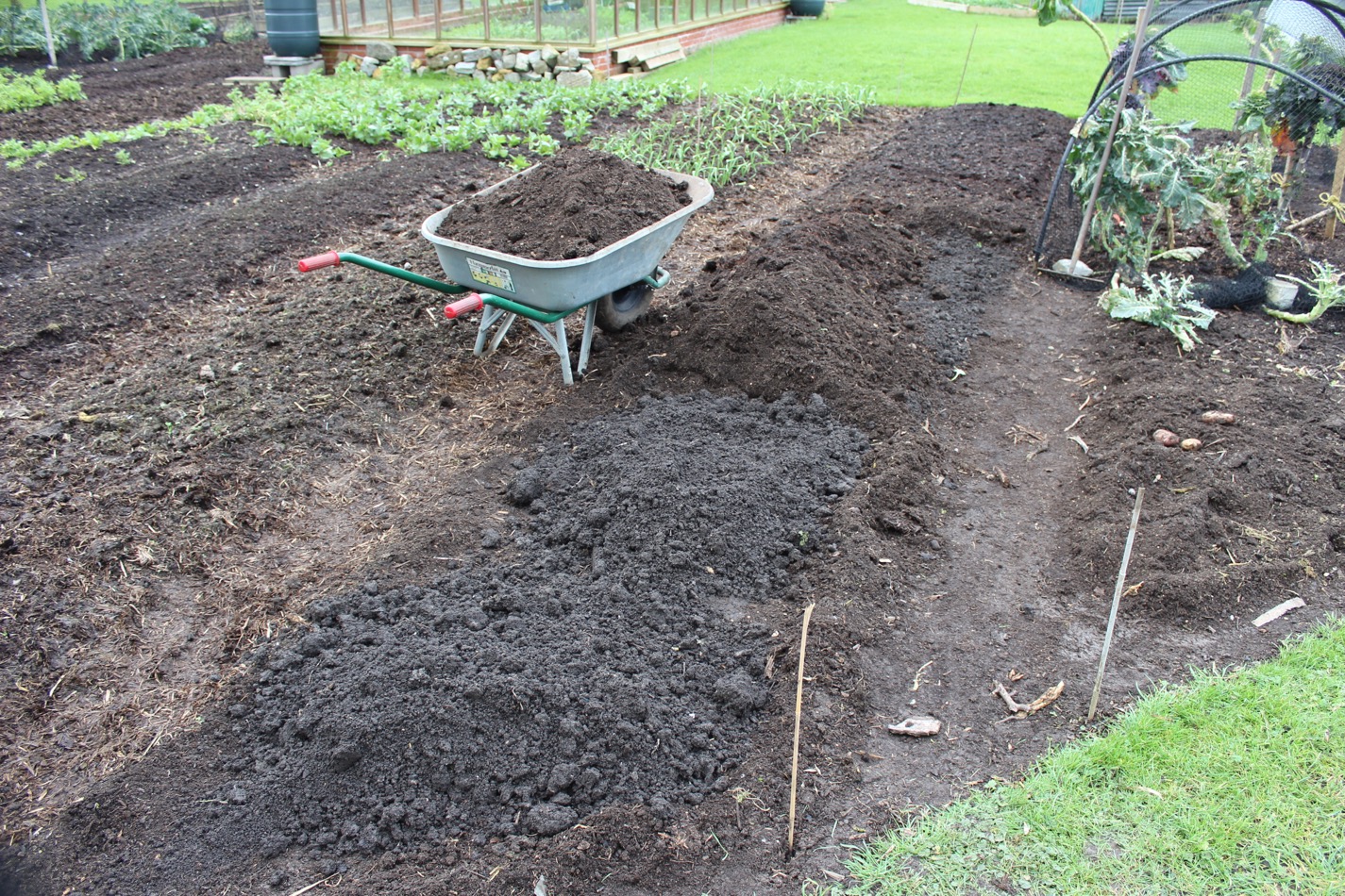 In the wheelbarrow is the surface compost which I scraped off, then the helps are of topsoil