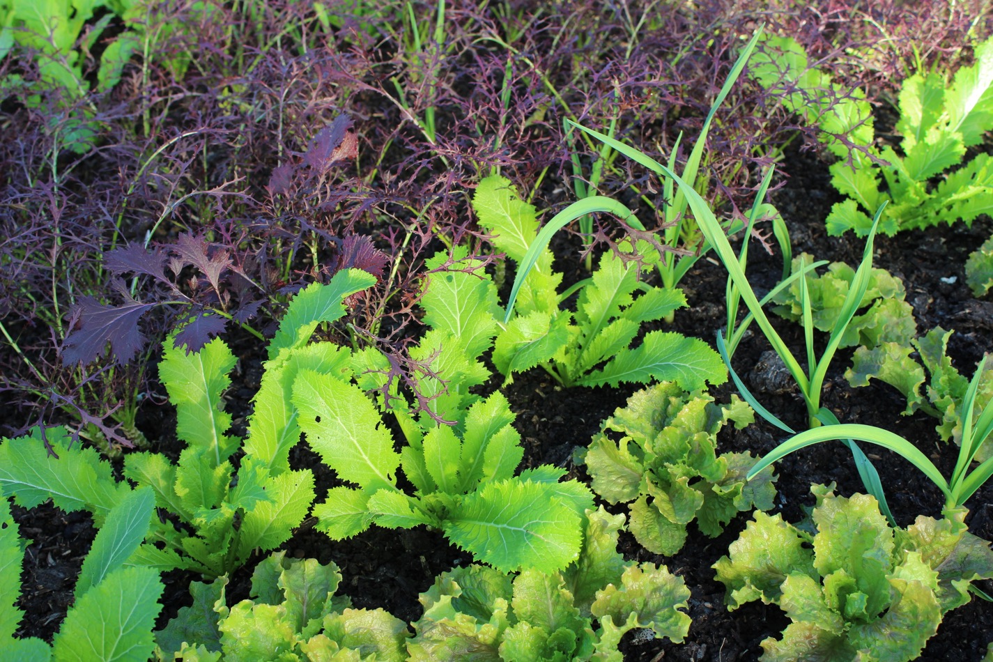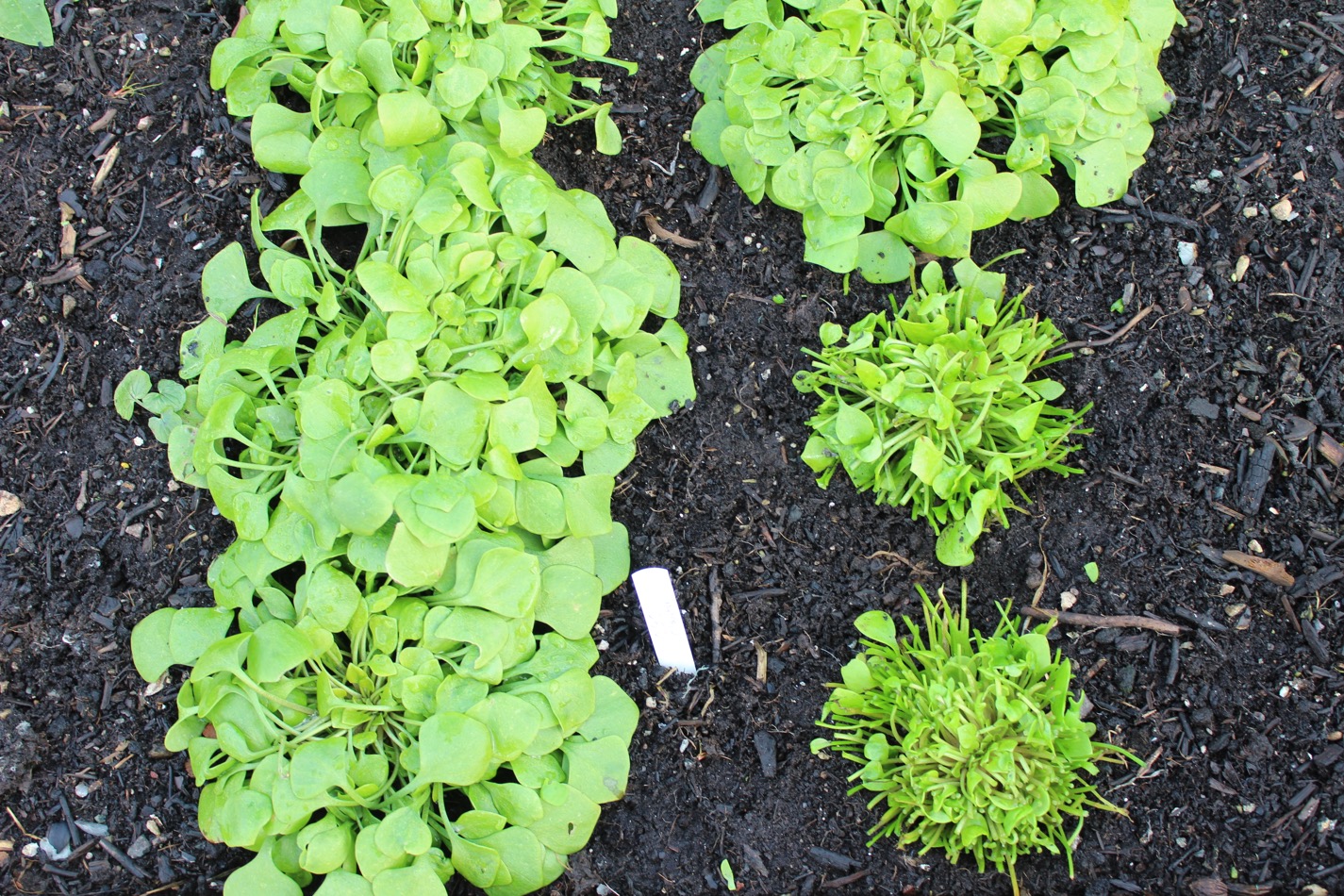 Outdoor Claytonia winter purslane, cut for salad, planted Nov.