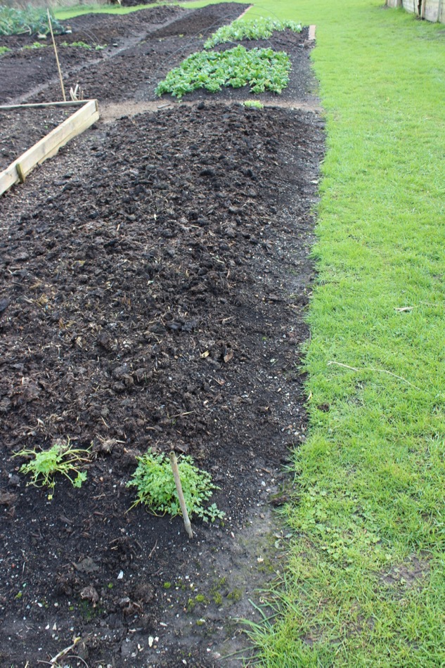 Beds, edges with no wooden sides mean less expense, less slugs, a little less tidy!