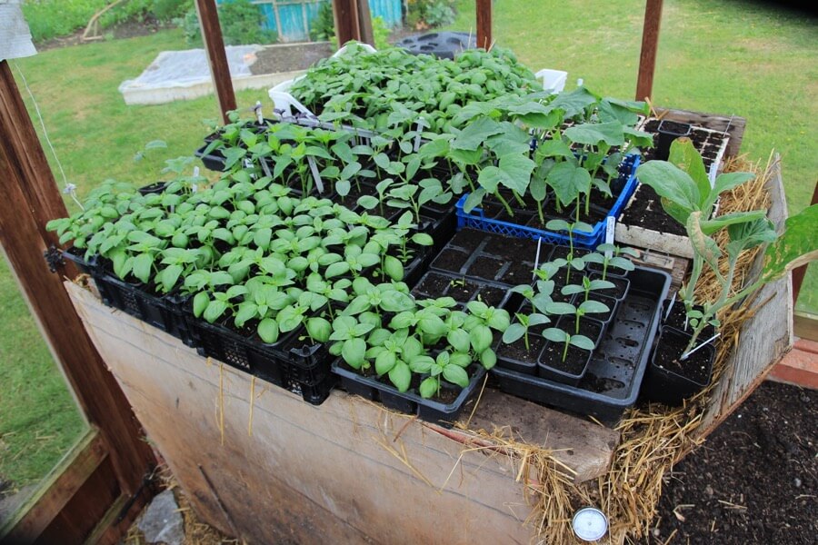 Until the end of May, it’s more reliable to sow runner and French beans undercover, because they do not like cool nights. You should be able to sow outside soon.In the greenhouse I lost some bean and cucumber seeds to a mouse, but then caught it in a trap. Rodents love all fleshy seeds and in my case the hotbed offers them a home.Meanwhile the cool-season veg planted in spring are coming along nicely at Homeacres.