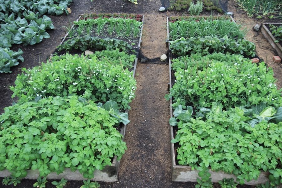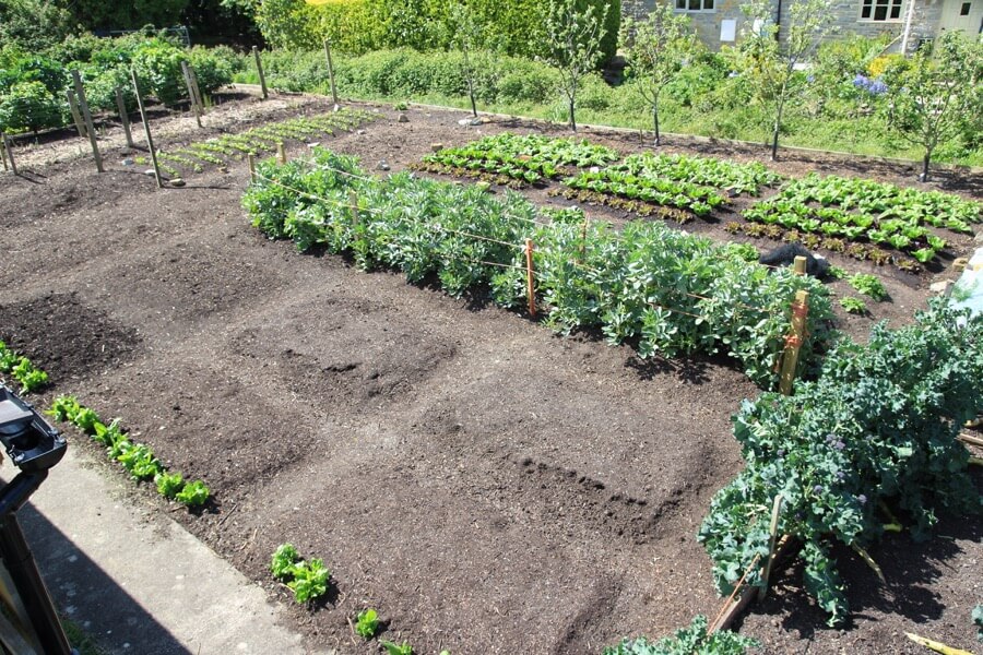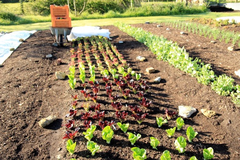 If you are using my method of compost mulches applied in the winter months, then hoed and raked lightly in early spring to kill the tiny weeds germinating, you should have few weeds to worry about now. Simply pull any small weed seedlings you see, or hoe lightly (max. depth 1in/2cm) if you see many weed seedlings. For hoeing to work it needs to be a dry day.You can see how few weeds are in the beds below and it has not required much time or effort to keep them so clean, often we simply pull the few weeds while picking as in this example of harvesting lettuce.Should you still be clearing lots of perennial weeds, even starting from scratch, do check out these options for clearing.