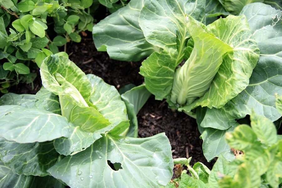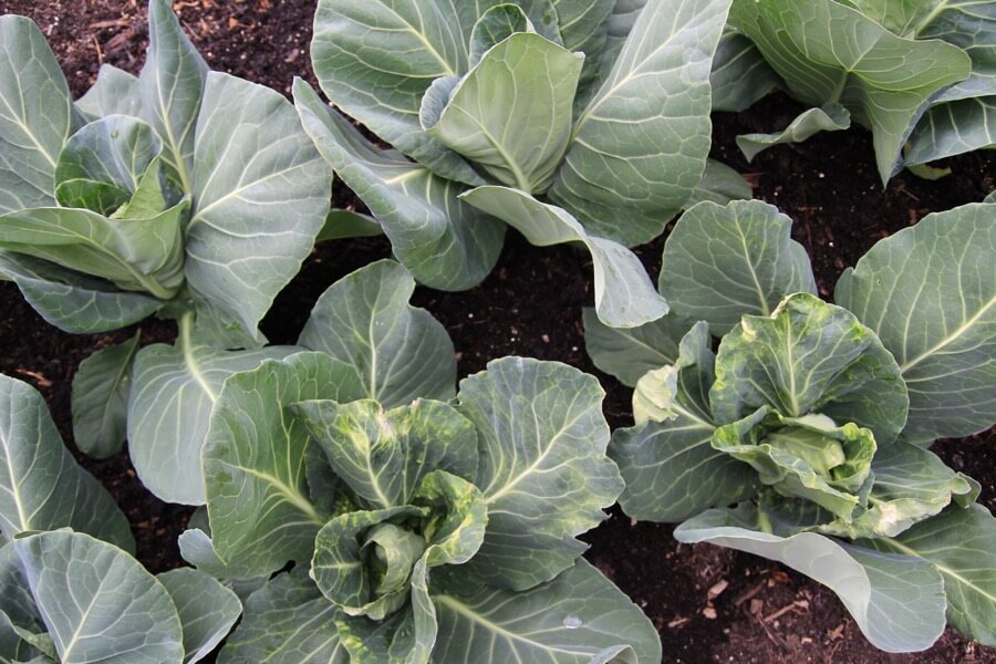 Section of the cabbage showing aphids and only the heart leaves unaffected