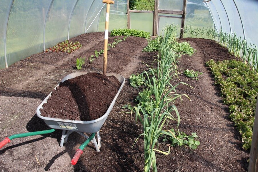 I have had some exciting trips. Giving a day course at Daylesford Organics in the Cotswolds allowed me and the participants to contrast intensive no dig with large scale, 20 acre veg growing using machinery, in the market garden run by Jez. He has a heavy soil (clay loam) which was in dry, hard lumps where it had been cultivated, and it had lost a lot of moisture too. The challenge of moving to no dig on such a scale, which is possible, would require investment in compost and compost-making, and some scaling down of area to make more of the land at all times.At Sissinghurst we saw a three quarter acre no dig garden, on yellow Kent clay. It produces five tonnes per annum of vegetables for the National Trust restaurant there. Helen Silver has got the garden running very smoothly, using one to two inches each year of green waste compost on the beds, and some small chips of green wood for the paths.The next day I was speaking at Blooming Green’s no dig flower garden near Maidstone. Bec and Jen grow the flowers on beds mostly covered in mypex, with grass paths, and they have only three days a week to run the garden. Much time is saved by selling pick your own flowers.