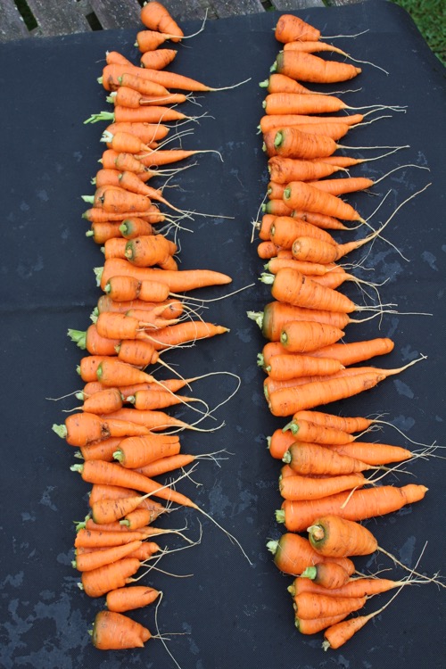Comparing carrots from dug soil on left and undug soil on right, in my experiment
