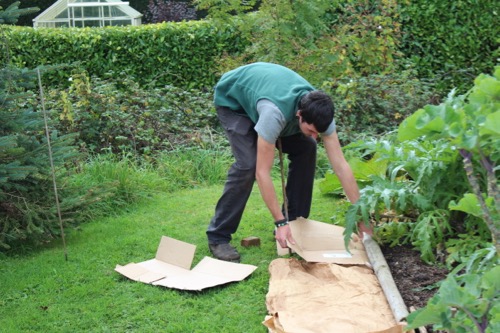 After clearing and watering, Josh is firming the surface compost, levelling too