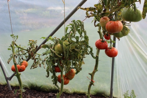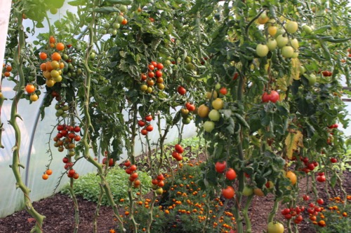 Tomatoes have cropped well undercover and there were not too many green ones at the end, thanks to picking out all growing points from early August, and no watering since mid September. Now we have an eye on recipes for pickling or using green tomatoes in a curry.