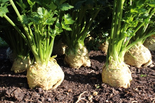 Celeriac at the Hamlyns’ in Suffolk, on sandy soil, no dig with compost mulch