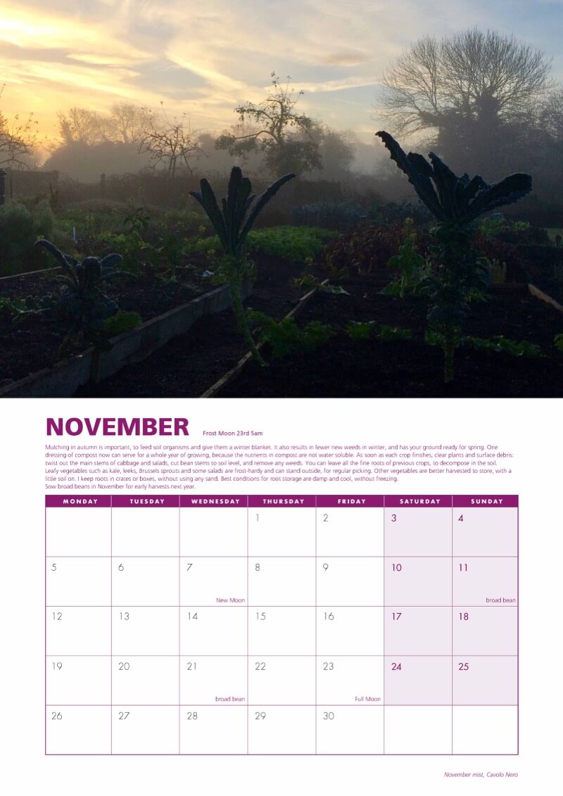 We have produced a new calendar for 2018, printing tomorrow and available here. Lovely veg and garden photos, monthly advice for no dig and sowing + my selection of top dates, based on both moon and season.Buy the wall calendar for £1 less direct from the printers ASK calendars.Thankyou to Mikey Foulerton for great design and organising production. It's A4 opening to A3 and stapled not wirebound, hangs from punched holes.