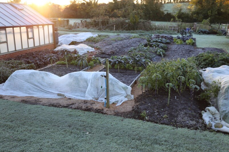 13th November and -2C/28F, bed surfaces quite hard as frost lasted several hours, trial beds on left