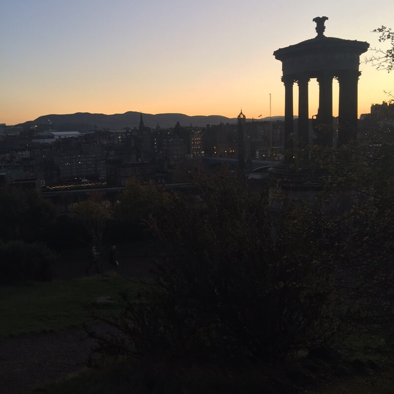 Edinburgh city as night falls, the uncompleted Parthenon looking fine!