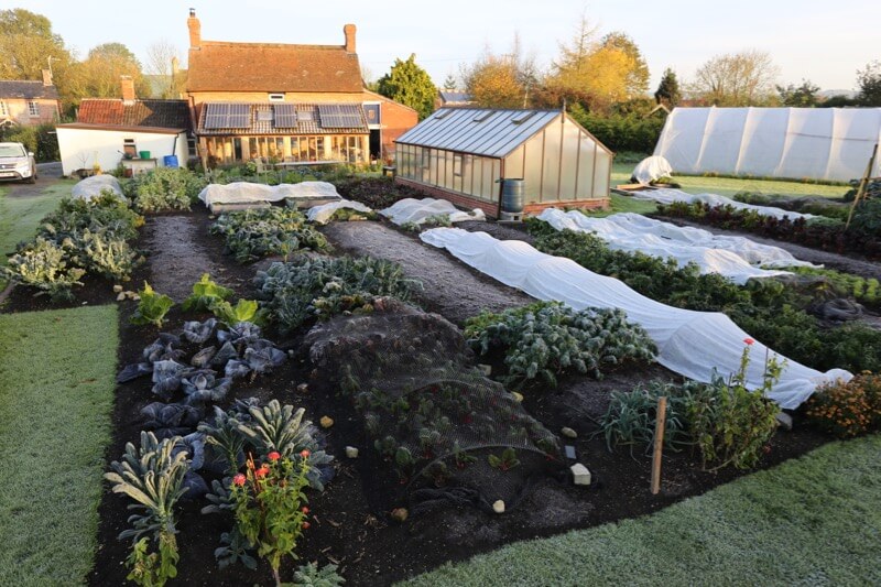 Growth in the polytunnel looks promising: we simply clear summer crops, water, plant. No amendments until next May.