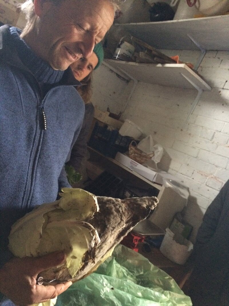 Before hard frosts, it’s time to harvest cabbage hearts, beetroot and carrots. I put them in boxes or crates, that is all, see this storing video for details. The cabbage photos below are from February.