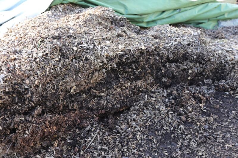 15 month old woodchip, not fine compost but a great mulch and fungal food: we are adding it to compost heaps + spreading some on raspberry bed
