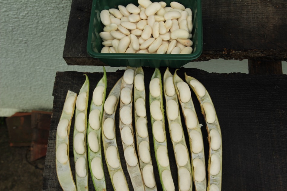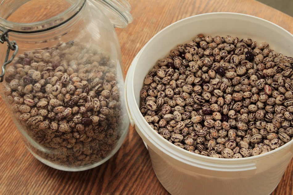 Borlottis 10lb (4.55kg) dry, shelled beans from 5 x 8ft6 (1.52×2.6m) = 0.23lb/sq ft, 1.15kg/sq m