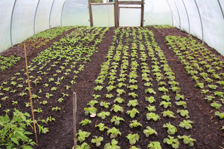Most of these plants went in 18.10 so are just under two weeks in the ground: lettuce sown 5.9, brassicas 20.9