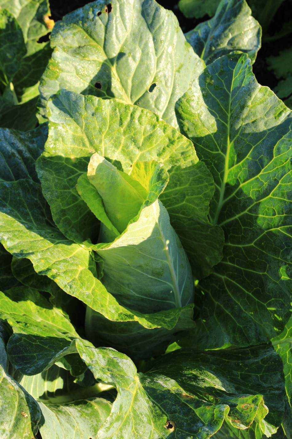 Filderkraut cabbage planted at summer solstice, immediately after clearing broad beans