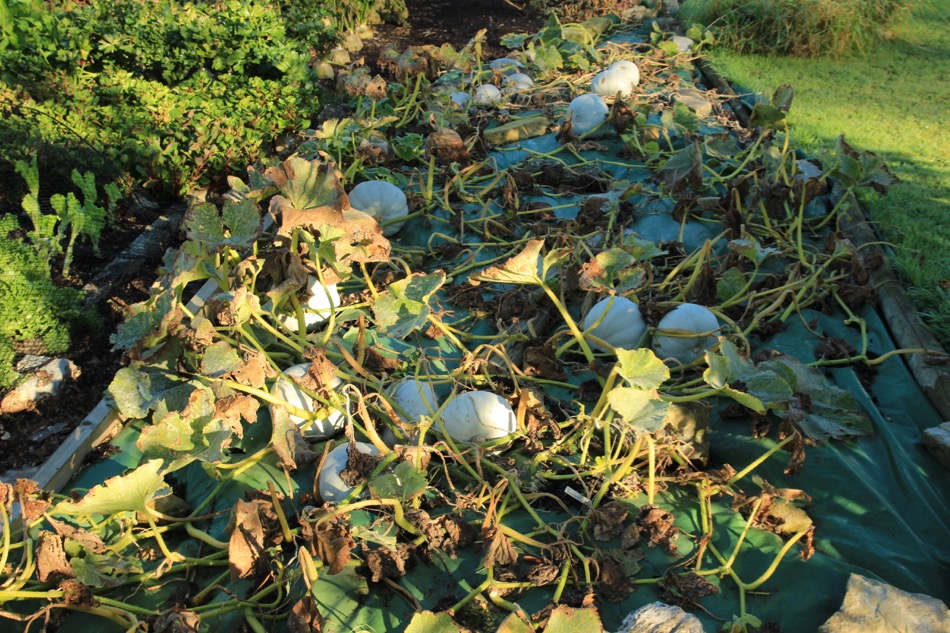 Do check the forecasts, because temperatures affect harvest dates - for example bring all squashes and pumpkins indoors before frost. Store them preferably in the house where their skins stay hard in the dry, warm air.