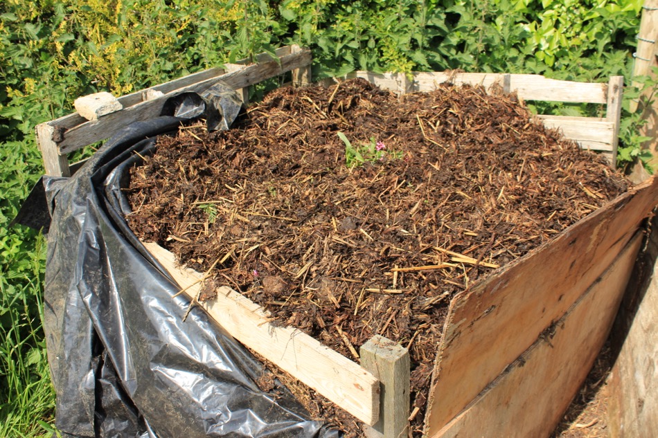 Homeacres compost from a heap filled in May, turned July, is cool and ready to use