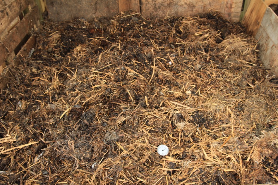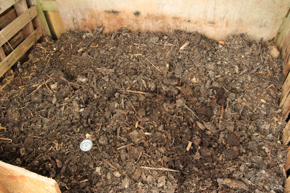 Homeacres compost from a heap filled in August, turned September, is still 60C