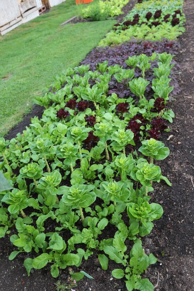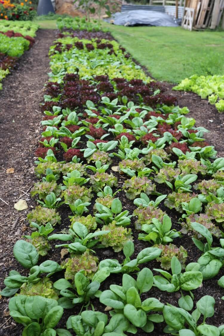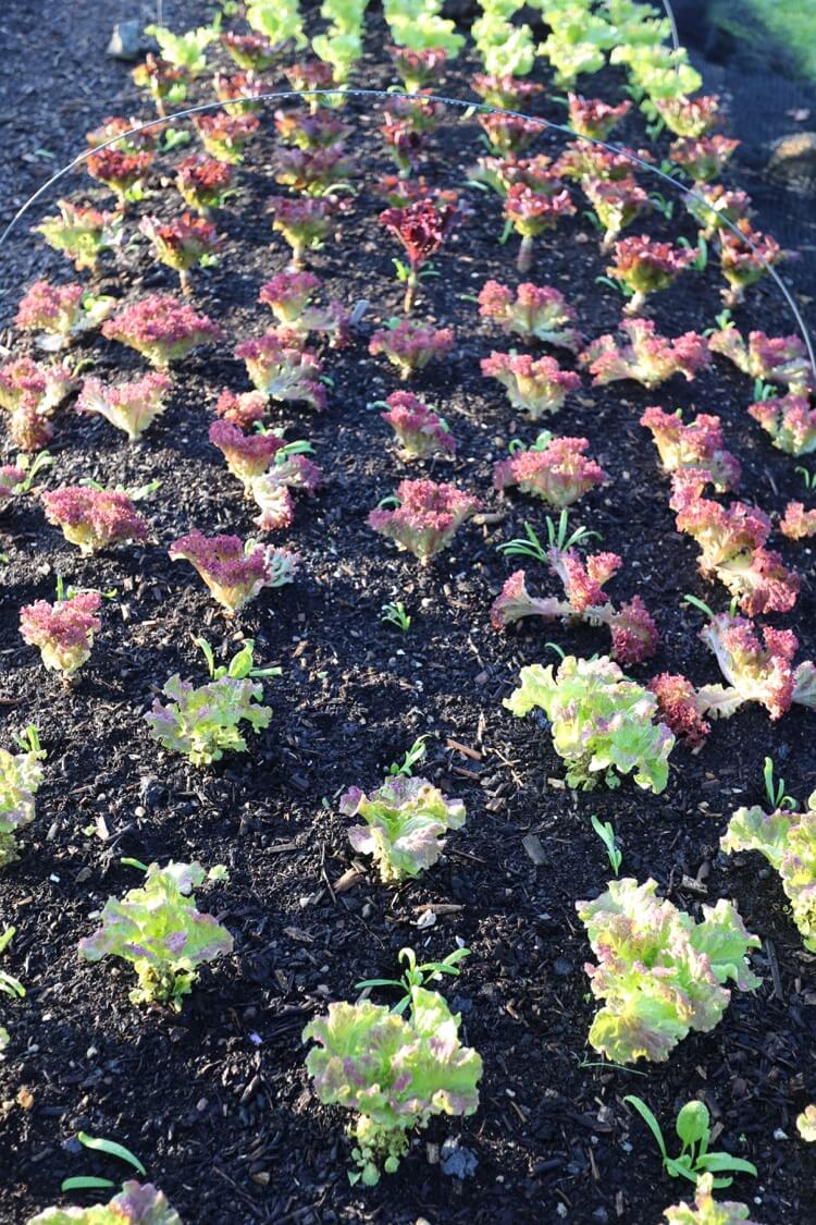 On 25th August I planted two-week old seedlings of spinach, mustards and salad rocket between lettuce that we have continued to crop. See how happy they look. Interplant = companion plant.