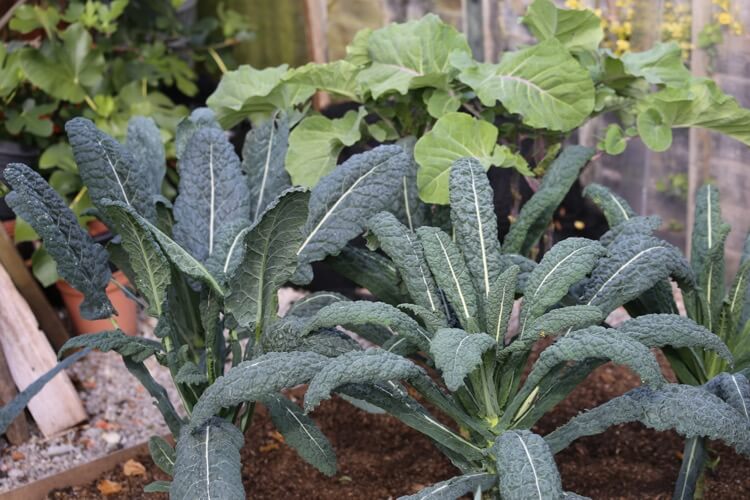 Kale Cavolo Nero which we are picking, behind is Taunton Deane perennial