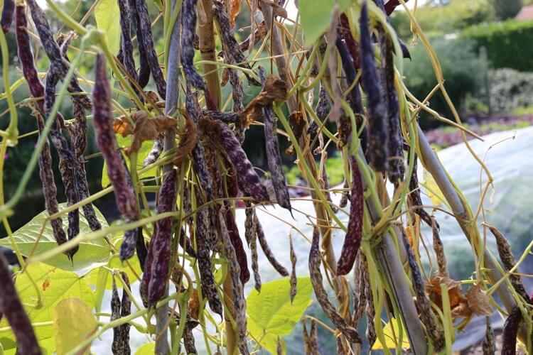 These are coming good to pick as pods dry, especially the runner beans which can go a little mouldy if pods get wet after they have dried. Whereas Borlottis stand well, we often pick them all in one go, in October.