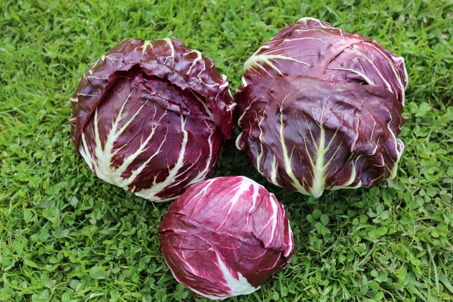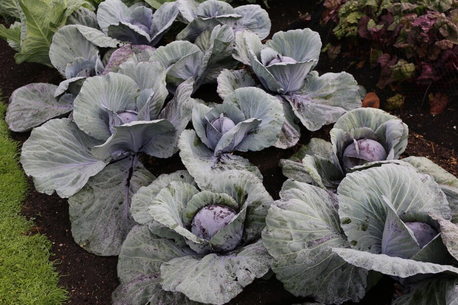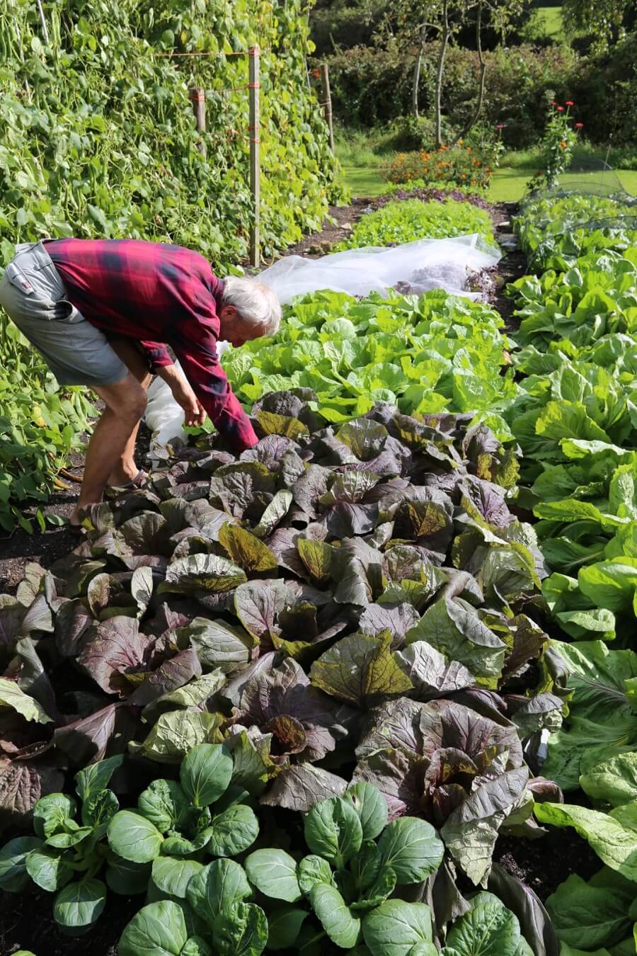 Slightly slower to grow are chicories for hearts, sown mid June to mid July, for cropping September to November or later. This red cabbage was sown in May, leeks in April, and all the veg in the garden photo are second crops, apart from parsnips and asparagus.
