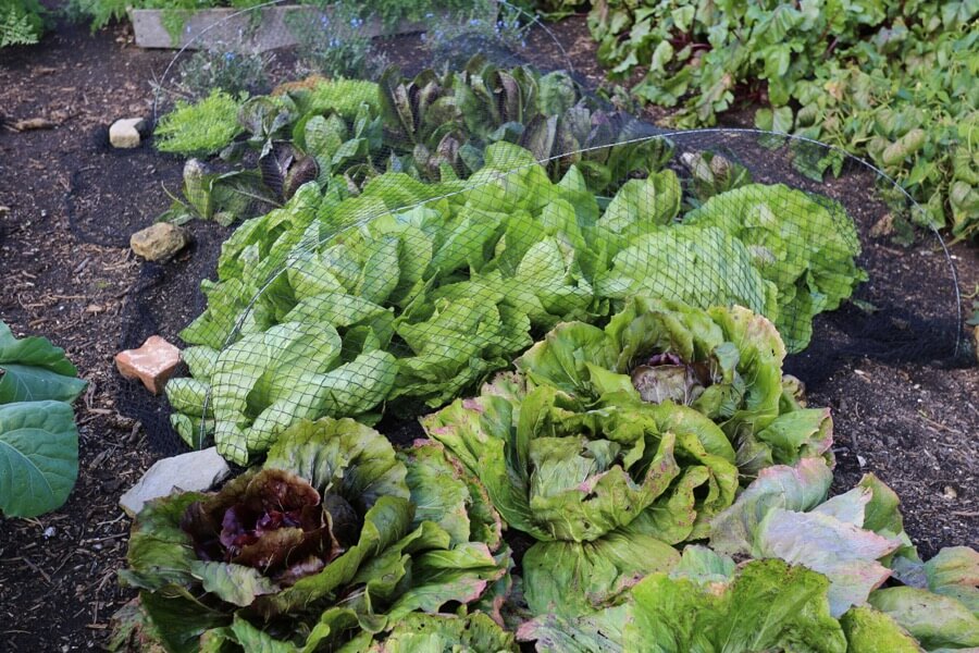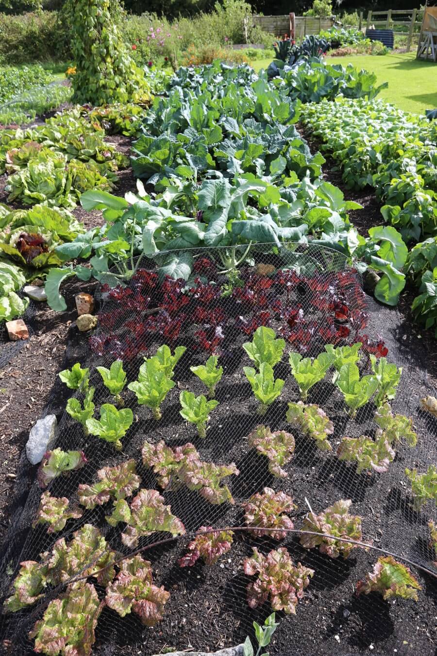 I find useful protection from anti-bird netting which lasts many years: it’s quick to lay over and then remove for weeding or picking. The other main product is white mesh: a 2.1m width works for most veg or 3.6m for tall crops like carrots at the moment, against root fly. Fleece is more fragile and best for weather protection. The link is to 30gsm grade, worth the extra money compared to 17gsm which often serves for one use only.