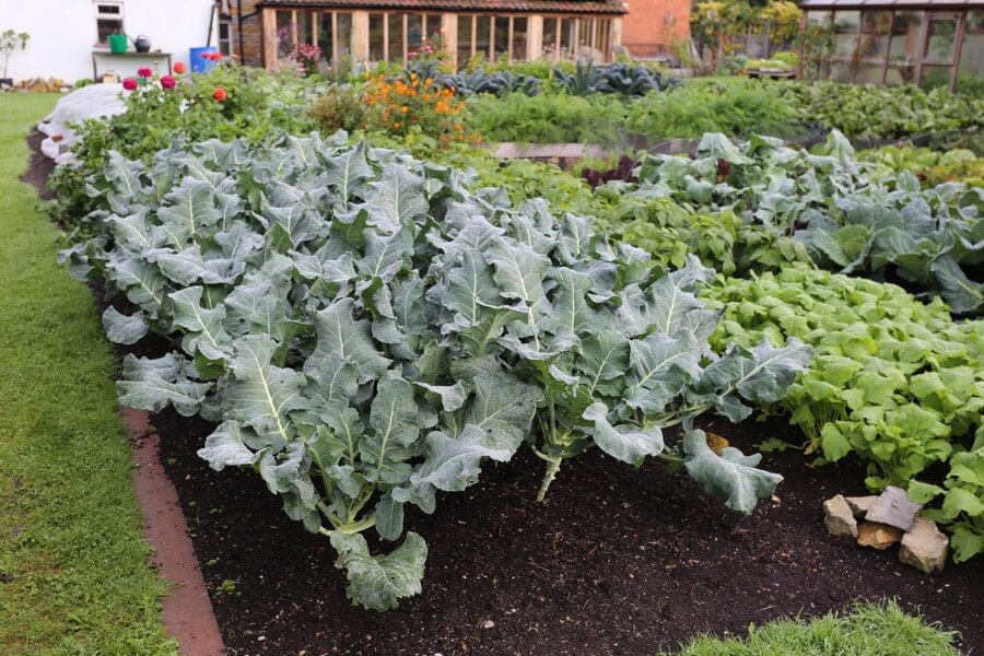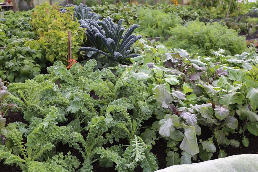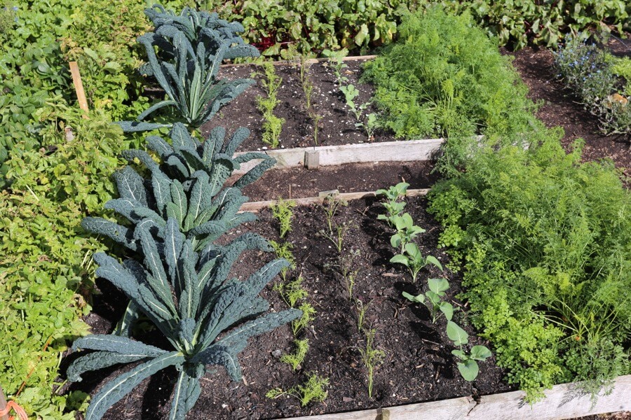 Many kale varieties in this bed, nice selection of flavours and hardiness, sown early July