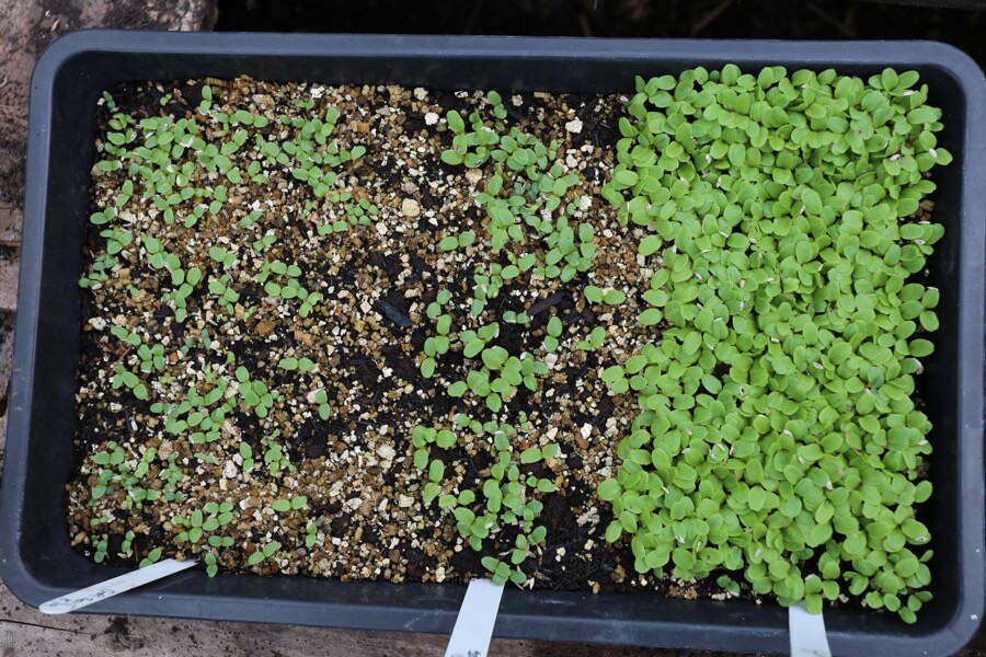 Lettuce seeds 6 days of different age, left to right is 2015, 2016, 2017