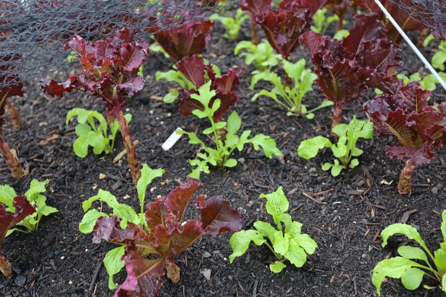 I interplanted rocket between the Bijou lettuce to gain time and space