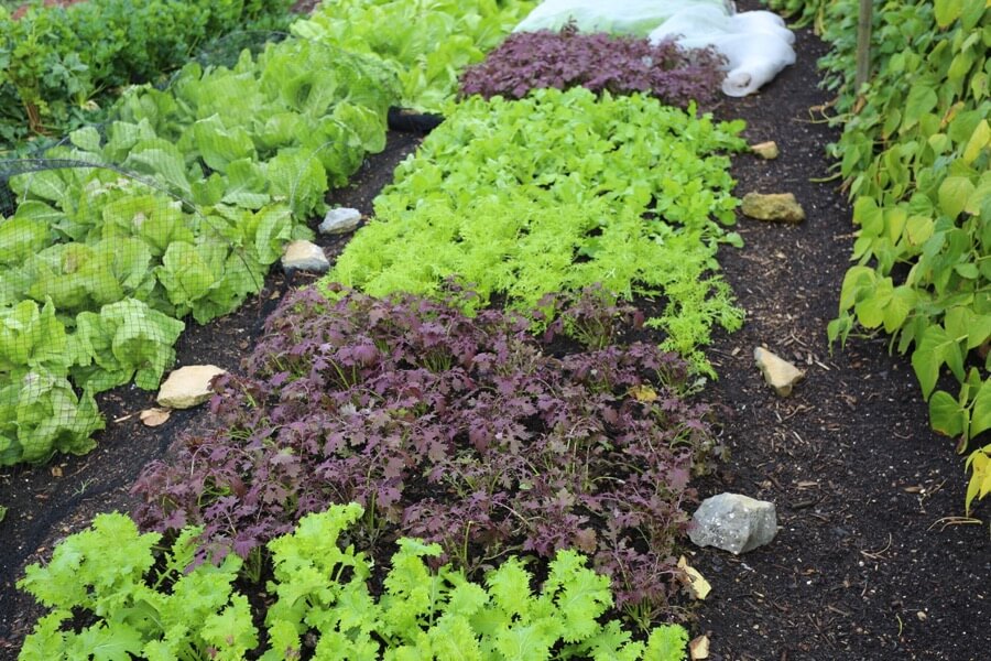 Kale planted late June, mustards just planted after clearing cumumber which had followed spinach