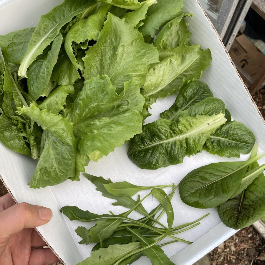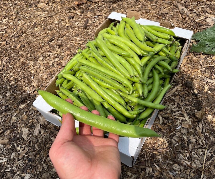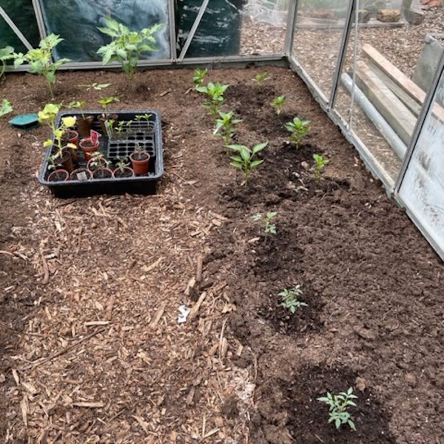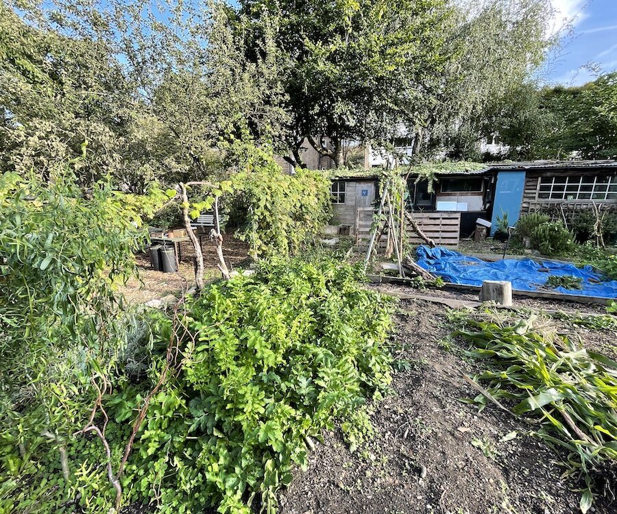 By June 2023, Bastiaan and his neighbour had harvested salads, cavolo nero, kale, cabbages and lots more from the allotment. He said that the taste, quality and nutritional values were off the chart! Courgettes, sweet passion melon, tomatoes, aubergines and peppers were growing nicely in the greenhouse and there were some outside as well. They'd also started planting purple sprouting broccoli for next spring and were starting to harvest broad beans, which had grown amazingly well (some had black aphids but that was remedied by hosing them off).Photos from 17th June 2023, just nine months after starting work on the allotment – fantastic results.