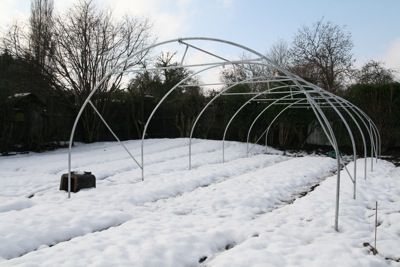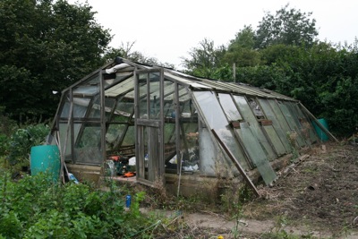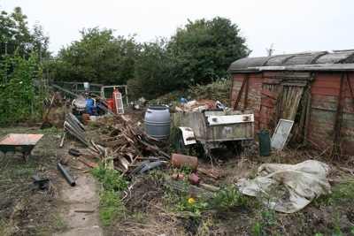 Here are some pictures of Robin Baxter's no dig allotment in Ilkeston, Derbyshire, which he took over in a dire state, just after visiting Lower Farm in 2008. The images are testament to his commitment, and to the fact that he is no stranger to hard graft where it is needed, mostly at the beginning stages. The plot is now clean and fertile, and needs much less input of time – he grows a lot of delicious food there.