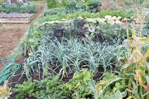 - Mulched soil in paths maintains structure, fertility and moisture, available to plant roots from the bed edges.