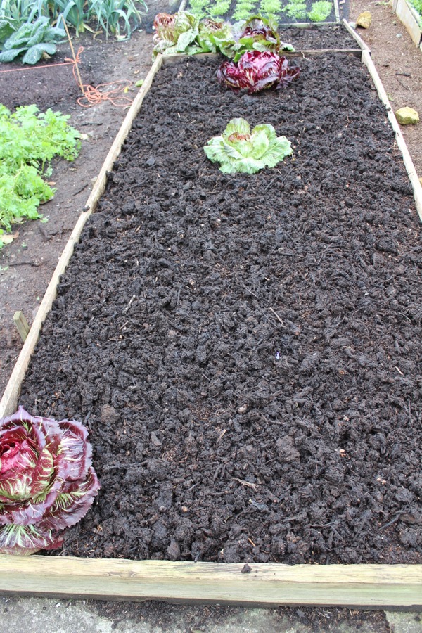 My homemade compost spread over a bed which still has a few radicchios to harvest by Christmas