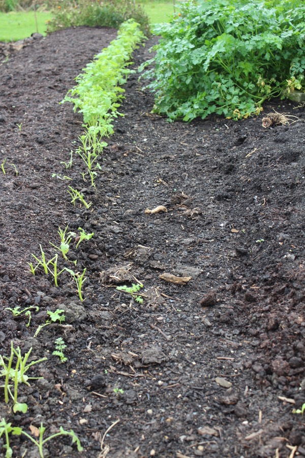 Rabbits have grazed the green manure and ignored the parsley, for now