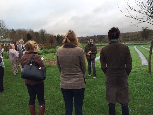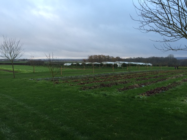 Daylesford on 27th NovemberI was invited to a launch of Agricology farming advisory service, at Daylesford organic farm in Gloucestershire. The 81 mile drive took nearly 3 hours but it was worth it, especially to see Jez Taylor’s work in the 20 acre market garden. Its a different scale to Homeacres as he grows a wide range of crops for 4 busy shops, a ready meals unit and 4 restaurants. Last week they picked 90kg salad plus leeks, kale, chard, parsnip, celeriac and beetroot, and in their spare time (!) they are making wreaths to sell, of foraged plants on a homemade willow base.