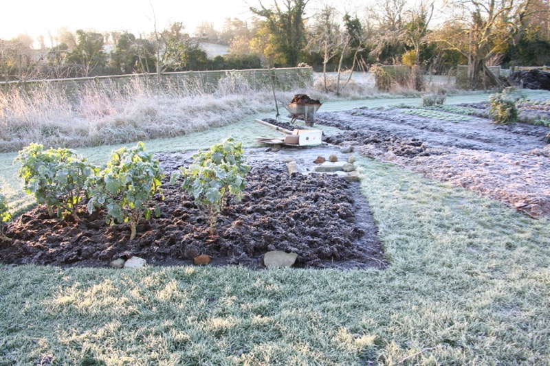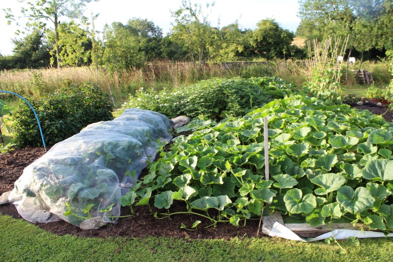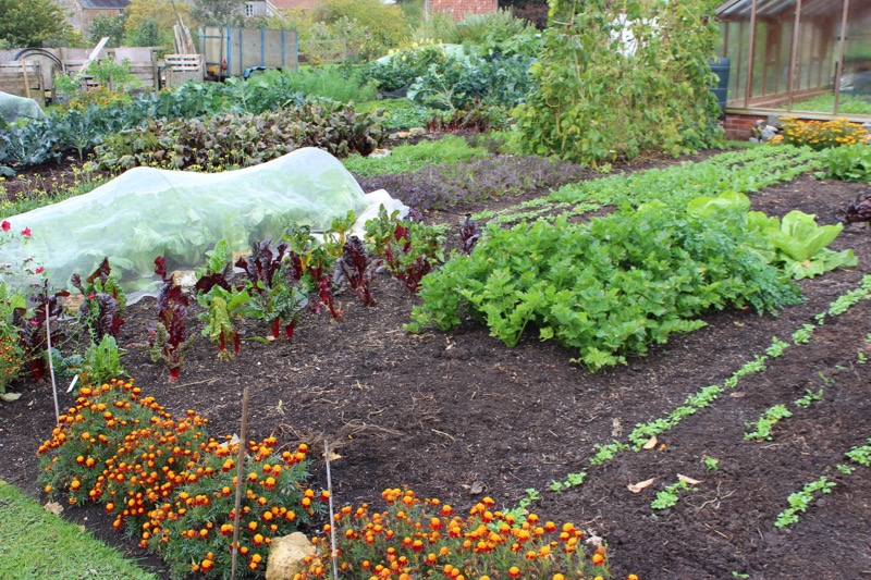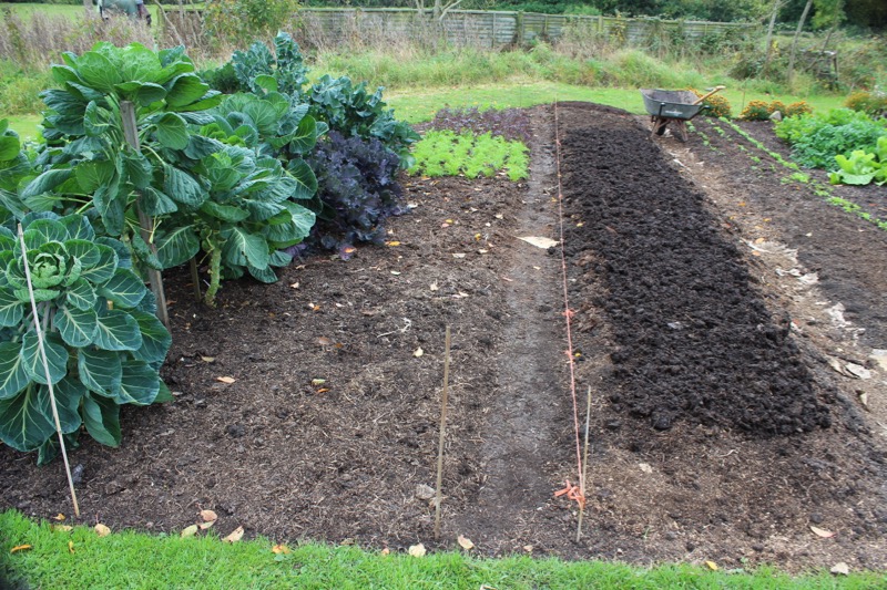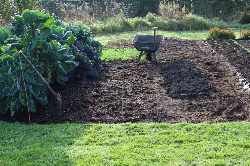 Over the last three years at Homeacres I have tried many shapes, widths and heights of beds and feel happier with those I have raised by adding a little soil in their base. This can be either imported from elsewhere or from scraping a thin layer of topsoil off what becomes the pathway, putting this soil onto what becomes a slightly raised bed. This gives a clearer definition of where beds and paths are, compared to when you make beds with compost/organic matter only, which condenses to a much thinner layer, volume wise, as it is absorbed into the soil.